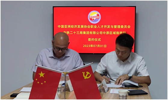 7月1日,委员会与中铁二十三局中原区域指挥部签署合作协议,双方在乡村振兴、产业赋能合作等方面展开合作,推进项目落地。