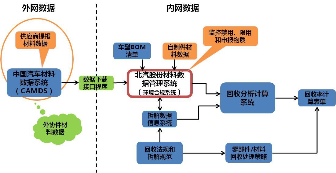 此外,汽车研究院建立了车用材料数据收集分析管理平台,通过CAMDS系统和环境合规系统,收集整车零部件材料信息,实现对汽车产品禁限用物质、可回收利用率及可再利用率的落地管控。