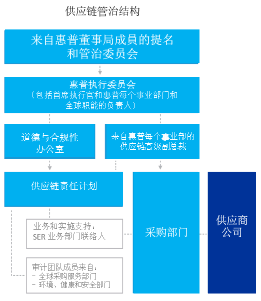 惠普执行委员会作为绿色供应链执行专门机构,各事业部及全球职能部门供应链高级副总裁均须向执行委员会报告相关计划。