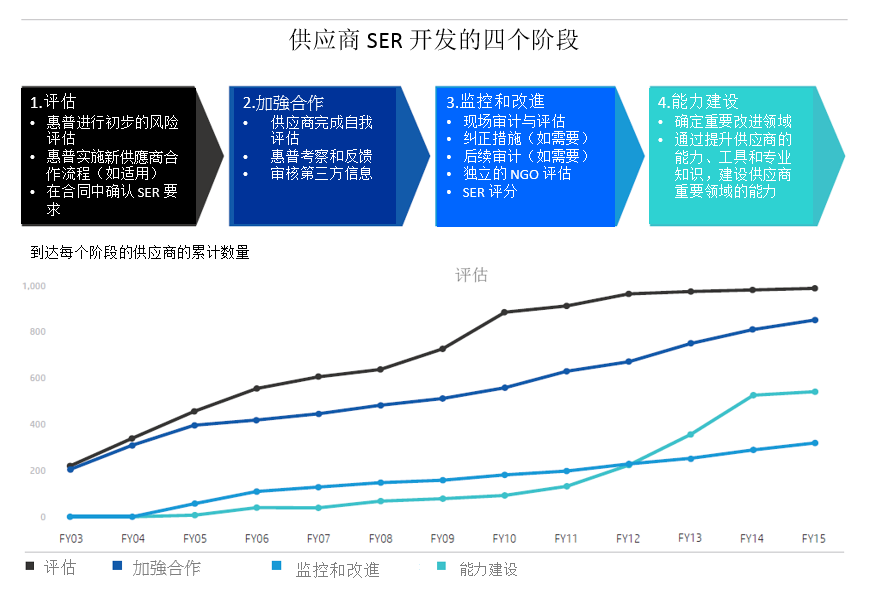 图4:惠普供应商社会和环境责任(SER)开发的四个阶段