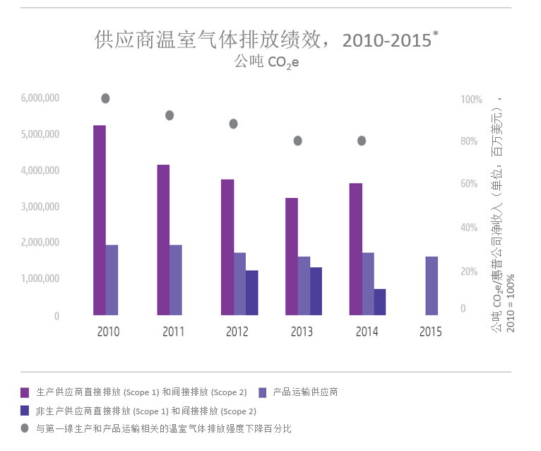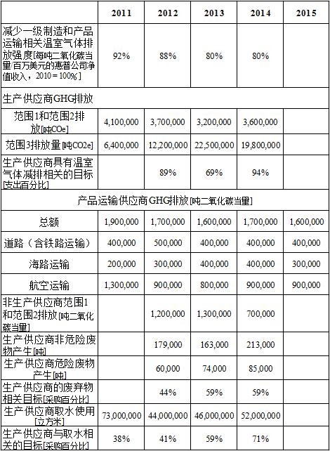 2015年惠普供应链温室气体排放强度比2010年下降了20%,提前实现2020年目标;产品运输所产生的温室气体排放量亦比前一年减少了6%。